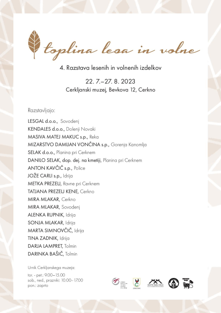 Povabilo na razstavo Toplina lesa in volne v Cerkljanskem muzeju