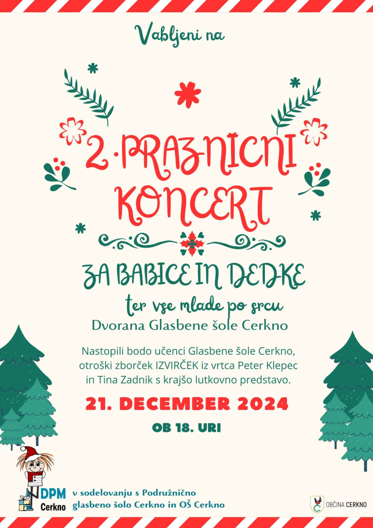 Nastopili bodo učenci Glasbene šole Cerkno, otroški zborček IZVIRČEK iz vrtca Peter Klepec in Tina Zadnik s krajšo lutkovno predstavo.