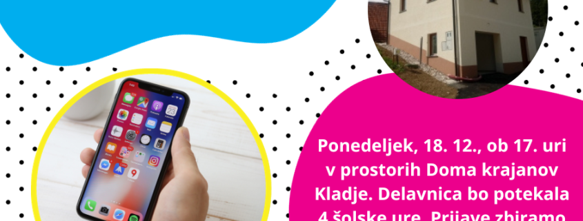 Ponedeljek, 18. 12., ob 17. uri v prostorih Doma krajanov Kladje. Delavnica bo potekala 4 šolske ure. Prijave zbiramo na tel. št.: 031 796 688.