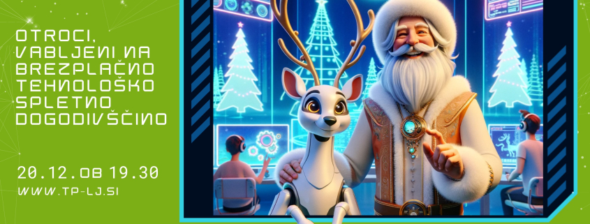 Z vašimi otroki ste lepo vabljeni na čarobno spletno pustolovščino s Tehnološkim Dedkom Mrazom, ki jo organizira Tehnološki park Ljubljana.