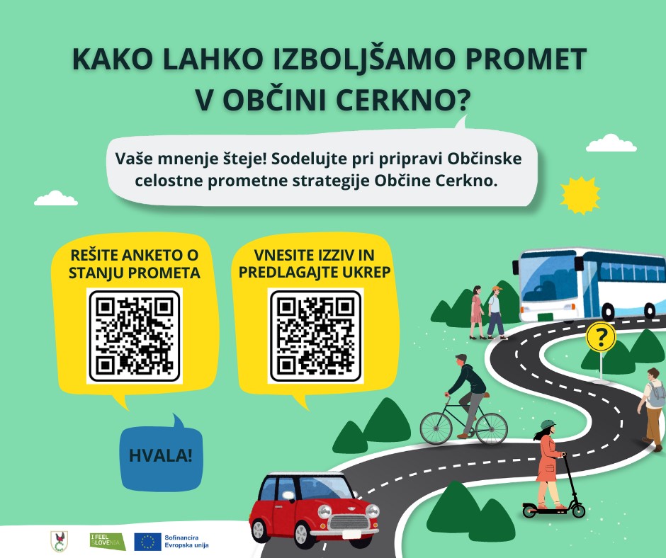 V Občini Cerkno bomo zasnovali novo Občinsko celostno prometno strategijo (v nadaljevanju OCPS) s katero bo občina izboljšala načrtovanje prometne infrastrukture ter odprla več prostora za trajnostno mobilnost.