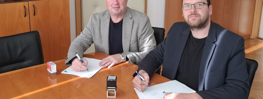 Včeraj sta župan Občine Cerkno, Gašper Uršič, in direktor SGP Zidgrad Idrija d.d., g. Rado Raspet slovesno podpisala pogodbo za gradnjo avtobusne postaje v središču Cerkna.