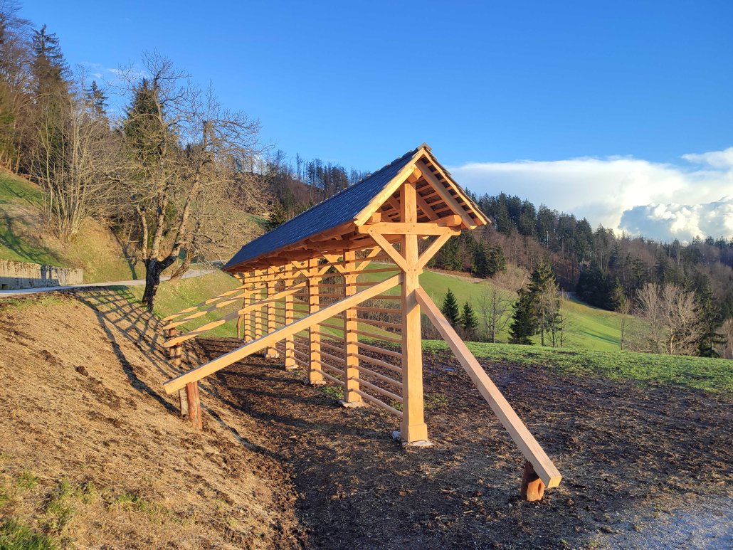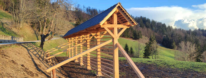 Delavnica tesanja lesa na primeru postavljenega enojnega kozolca