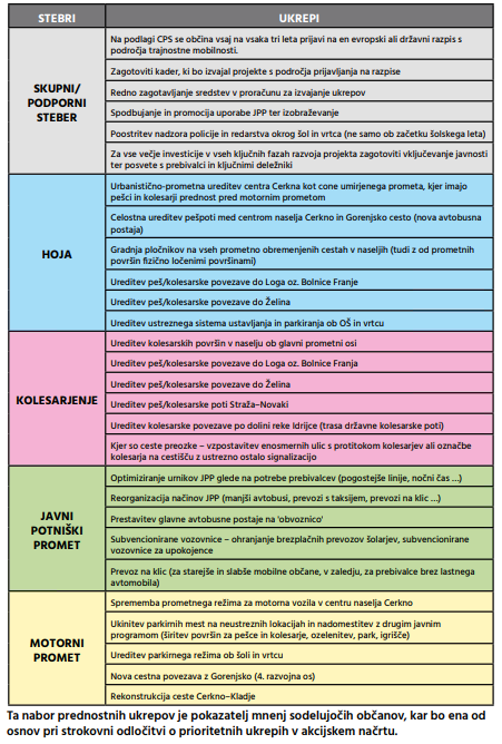 Med več kot 100 ukrepi v okviru petih strateških stebrov so po mnenju udeležencev in sodelujočih občanov v anketi najpomembnejši naslednji: