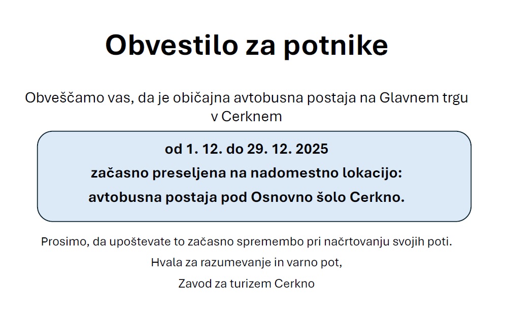 V tem času bo avtobusno postajališče začasno prestavljeno na postajo pri Osnovni šoli Cerkno.